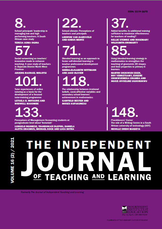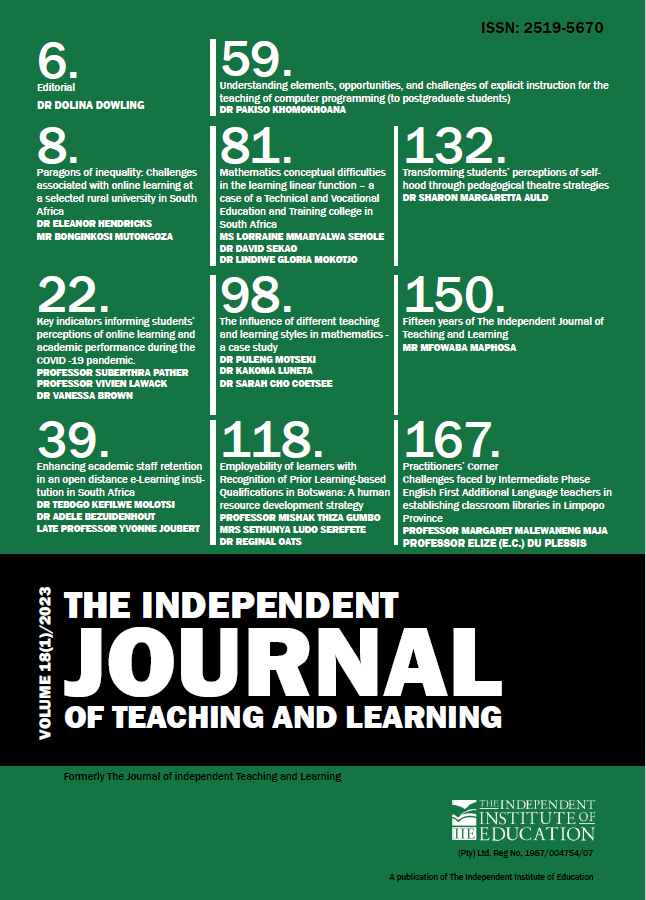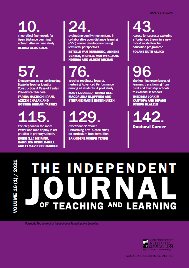 The Independent Institute of Education (Pty) Ltd, is the publisher as well as the copyright owner of the journal articles. We have a flexible and negotiable system when authors or their institutional libraries approach us to use the article elsewhere, as long as the final edited version is utilised, and The IJTL is credited. Over and above The IIE repository we do allow for archiving in other institutions repositories but this must be done by means of a formal written request sent to